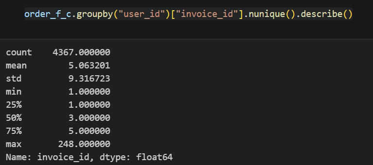 print(F"mean: {invoice_cnt.mean()[0]}")