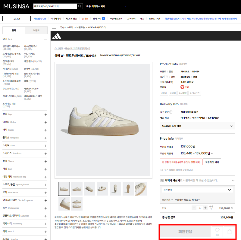 쿠팡과 무신사는 일부 인기 상품에 한하여 회원만 장바구니담기가 가능하도록 했다. (쿠팡은 로켓프레시 상품을, 무신사는 인기 브랜드 일부 상품을 이와 같이 설정해 뒀다.) 전체 구매 비중이 높은 카테고리를 선정했을 수도 있고 회사에서 키워야 하는 카테고리를 선정했을 수 있다.