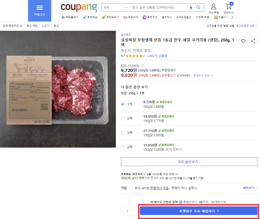 ▼쿠팡에서 아래 상품으로 장바구니 담기 진행