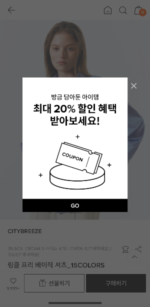 프로모션 참여를 통해 로그인을 유도한다. 이를 통해 장바구니 담기 후 이탈고객이 어떤 상품을 담았는지 파악할 수 있고 푸시 수신 동의를 통해 구매를 유도하는 CRM 캠페인을 진행할 수 있게 된다. (이외에도 가입을 유도하거나 매주 앱을 방문하도록 하는 효과도 가져올 수 있다. 목적에 맞게 세부적인 추가 조건을 달수도 있다.)