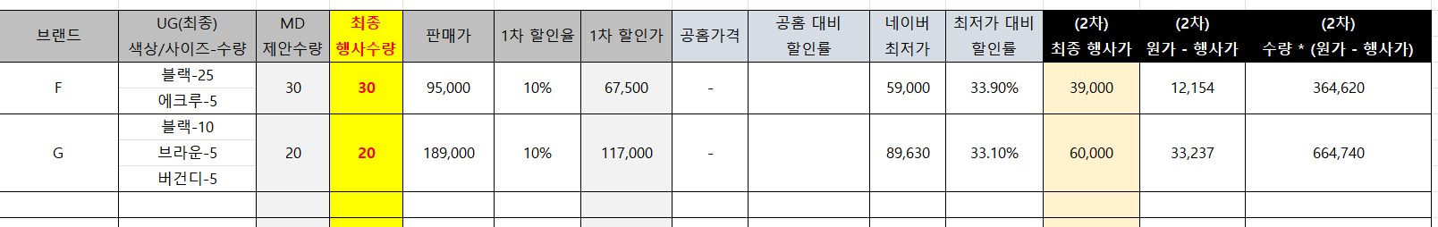 할인율, 수량, 원가 대비, 최저가 대비 등을 계속 조정하며 1차, 2차, 3차, 최최최종안을 만들고 마케팅 비용 1안, 2안, 3안, 최최최종 과정을 거친가격인 거죠...^^ (거기에 마케터와 MD님의 피, 땀, 눈물이 추가된...ㅎㅎ)
