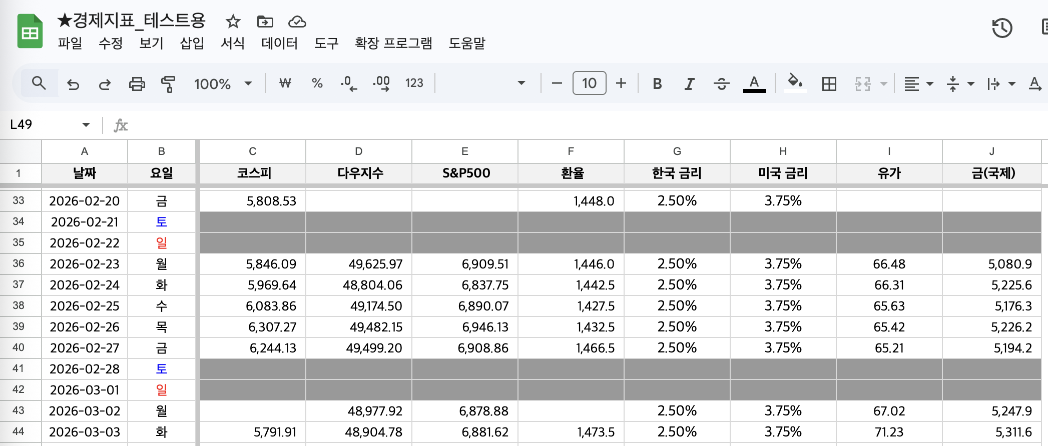 | [AI자동화] 구글 파이낸스 경제 지표 구글 스프레드시트 자동 업데이트하기(API 연동) (0) | 2026.02.09 |