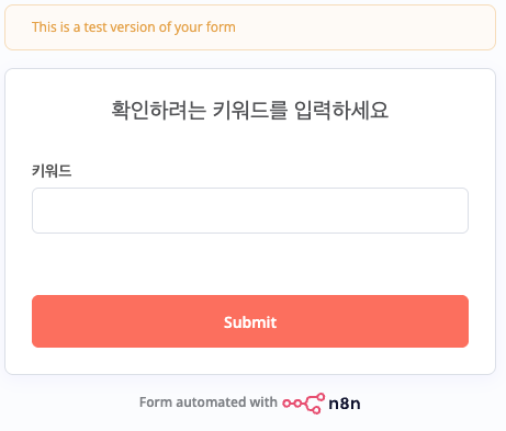 아래 형태의 팝업창이 뜨게끔 한다. 키워드를 입력하면 워크플로우가 실행된다. 세팅 상단 test url / production url 이 제공된다. 워크플로우를 최종 publish 시키면 production url을 공유해 주면 된다. 누구든 링크로 들어와 키워드를 입력하면 키워드 검색 결과 중 리뷰 수 기준 상위 5개 업체가 추려지고, 각 업체에 대한 리뷰 분석을 구글 스프레드시트로 확인할 수 있게 된다.